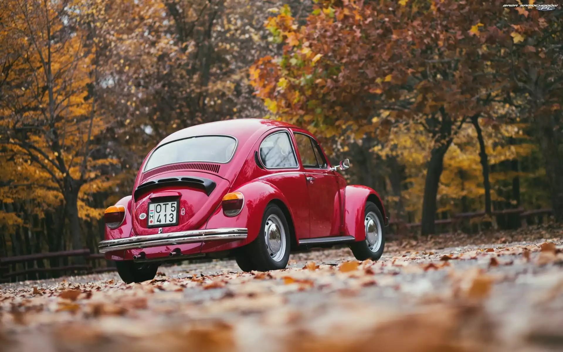 Samochód: Garbus, Volkswagen, Drzewa, Jesień, Samochód